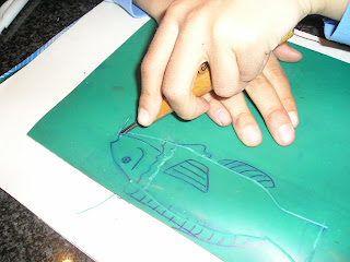Da un materassino per mouse abbiamo ritagliato le lettere-timbro per comporre la parola “ICTYS”…